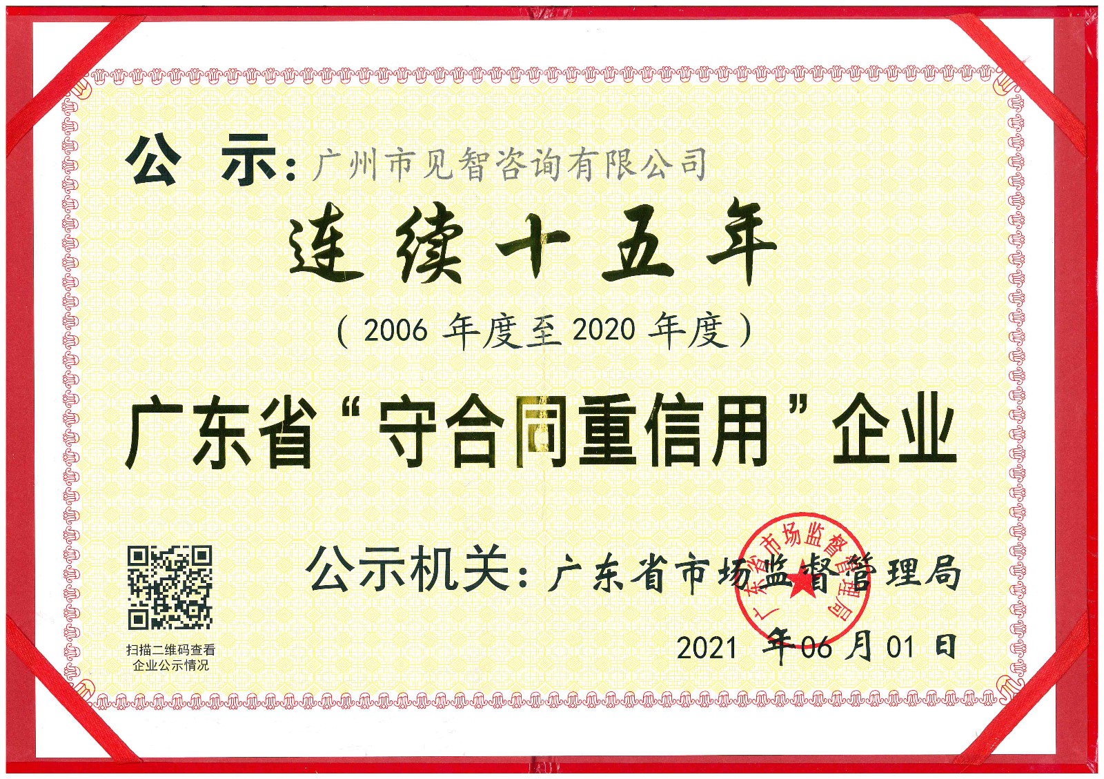 熱烈祝賀我公司連續(xù)15年榮獲省級“守合同重信用”榮譽稱號